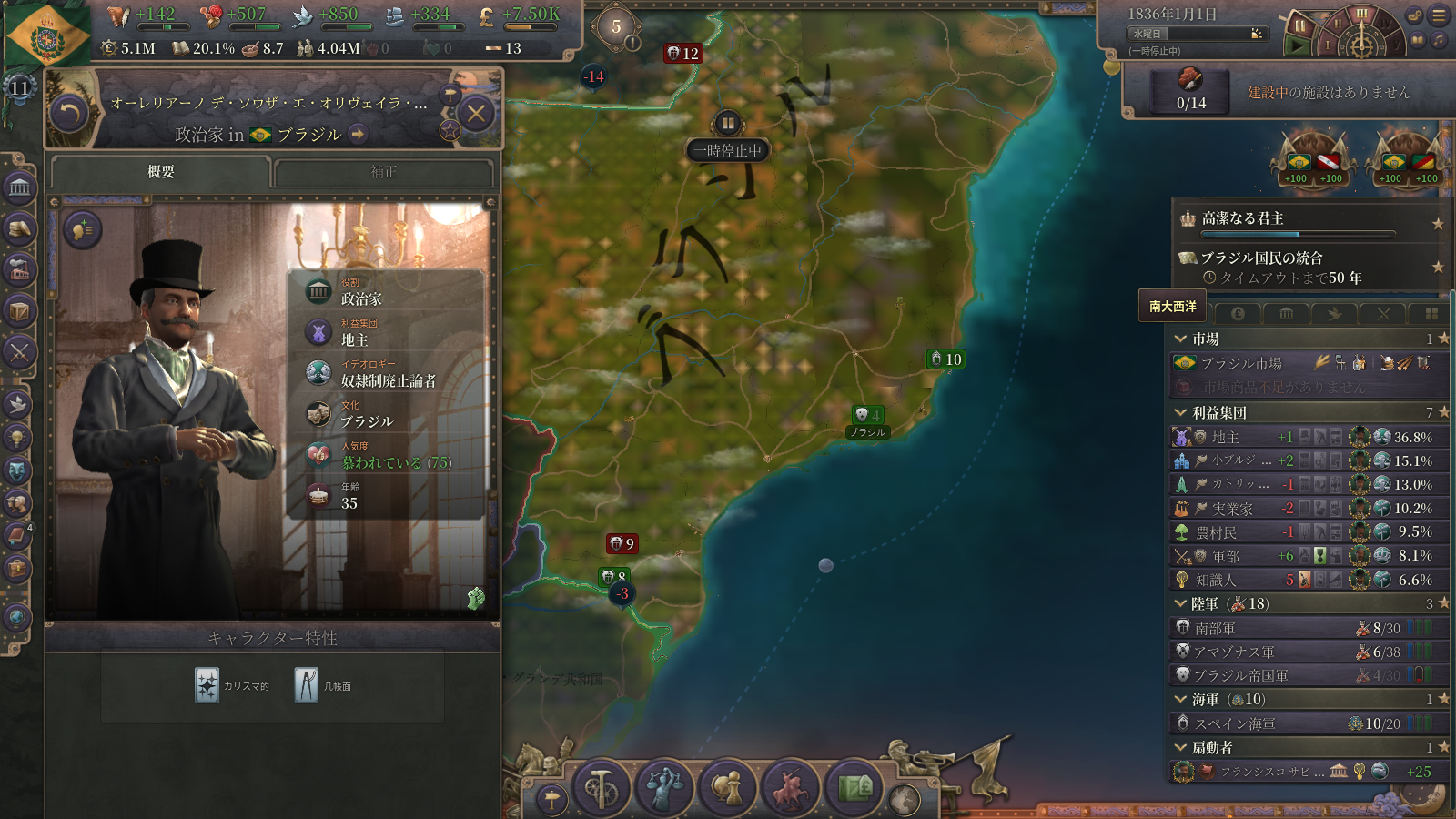 曲者なのがスリスタ。リオグランデ・ド・スルの社会不安はなかなか高いので、タバコ農園などを投資して生活水準を上げていきたい。