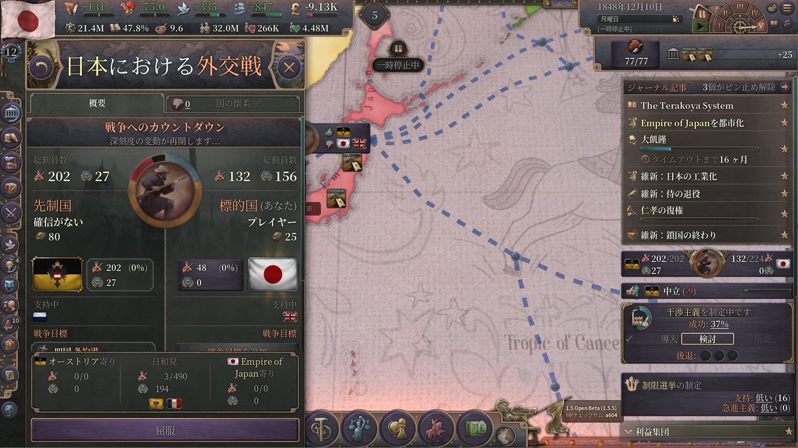 1849年10月、オーストリアとの戦争が終戦。ほぼイギリスに頼りっぱなしとはいえ、先進国として承認してくれることになった。