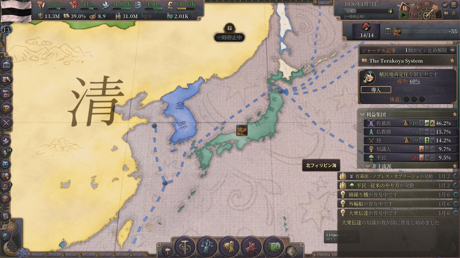 途中、任命制官僚の政治運動が起きる。状況次第では狙っても良かったが、ちょっとパス。