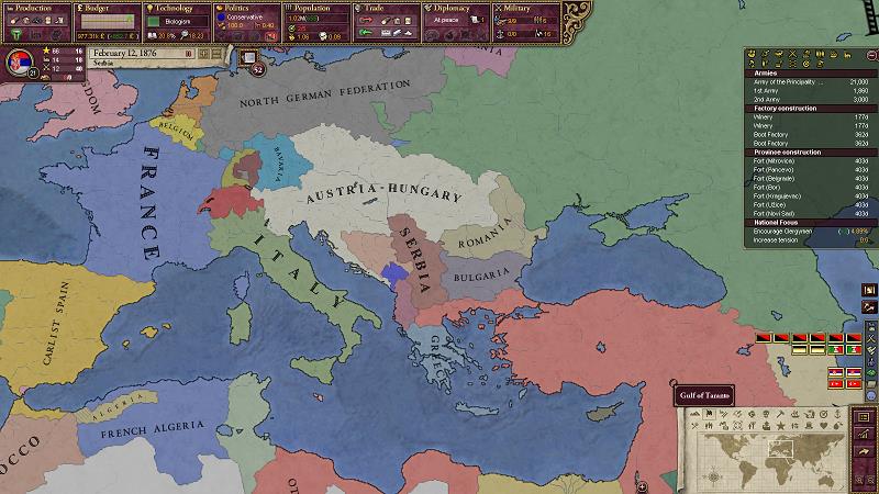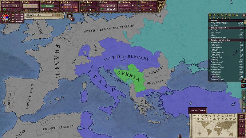 ボスニアを併合。これでセルビアの初期中核州は全て回収したため、「Greater Serbia」の決断を実行。