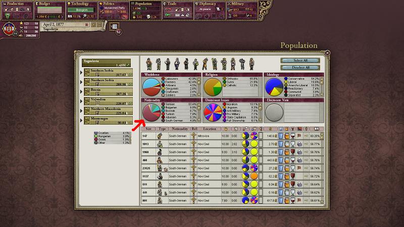識字率は南ドイツ人の60%~55%と北セルビア(旧セルビアの領土)の30%が大きいものの、旧オスマン帝国下の識字率の低さが大きく響き、国全体での識字率は18.5%と大きく停滞している。月0.03%は上昇するらしいが、これではきついので教育の研究を進めたい。あと聖職者比率は4%くらいまで持っていくと教育の効率がさらに向上する。