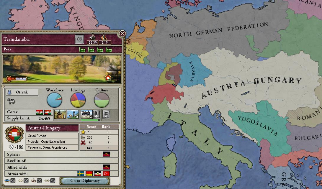 一応北ドイツとは同盟を組んではいるものの、どうなるかはわからないところ。独伊関係は決して悪いわけではないし、むしろトルコとの関係が気になる。